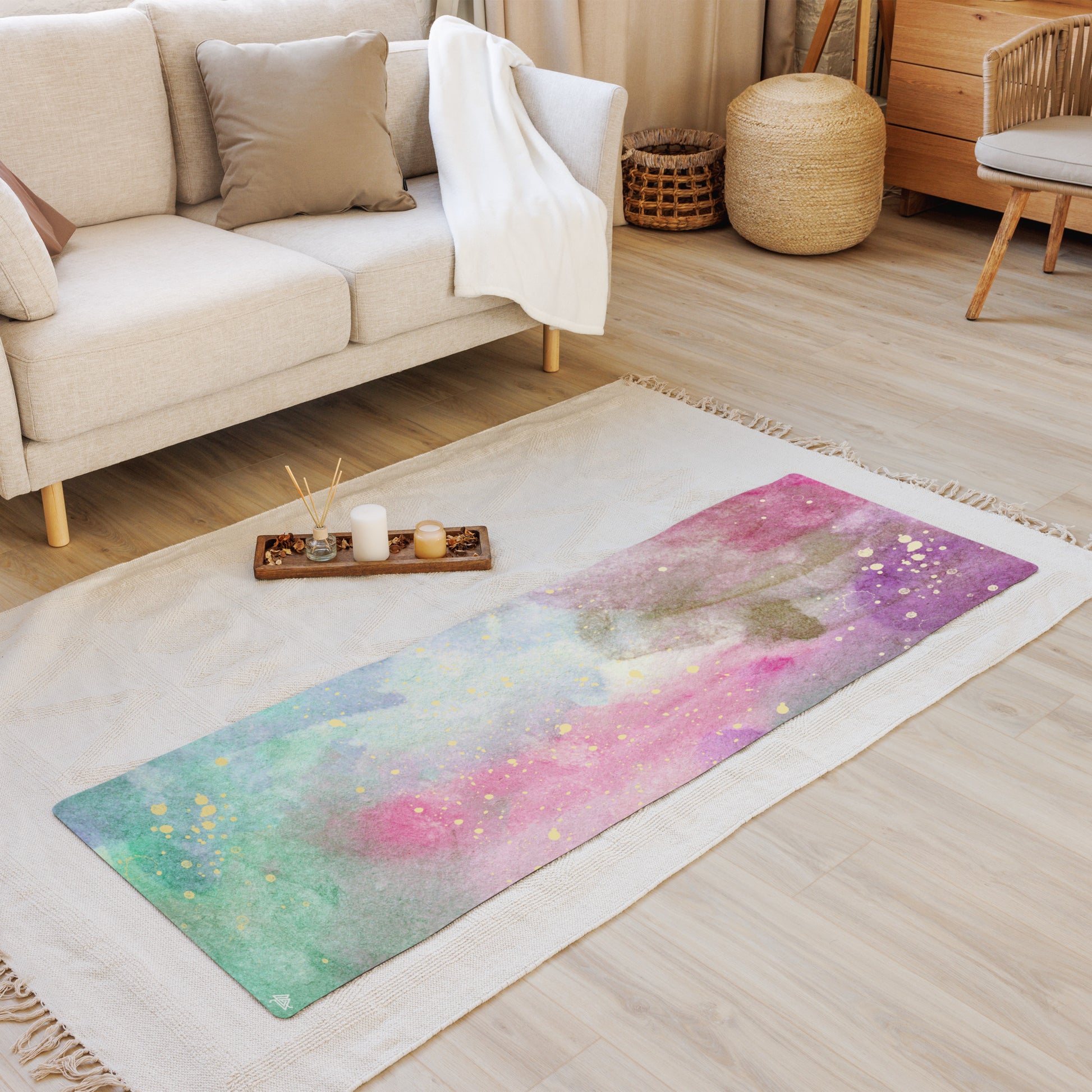 Pink & Green Water Color Yoga mat